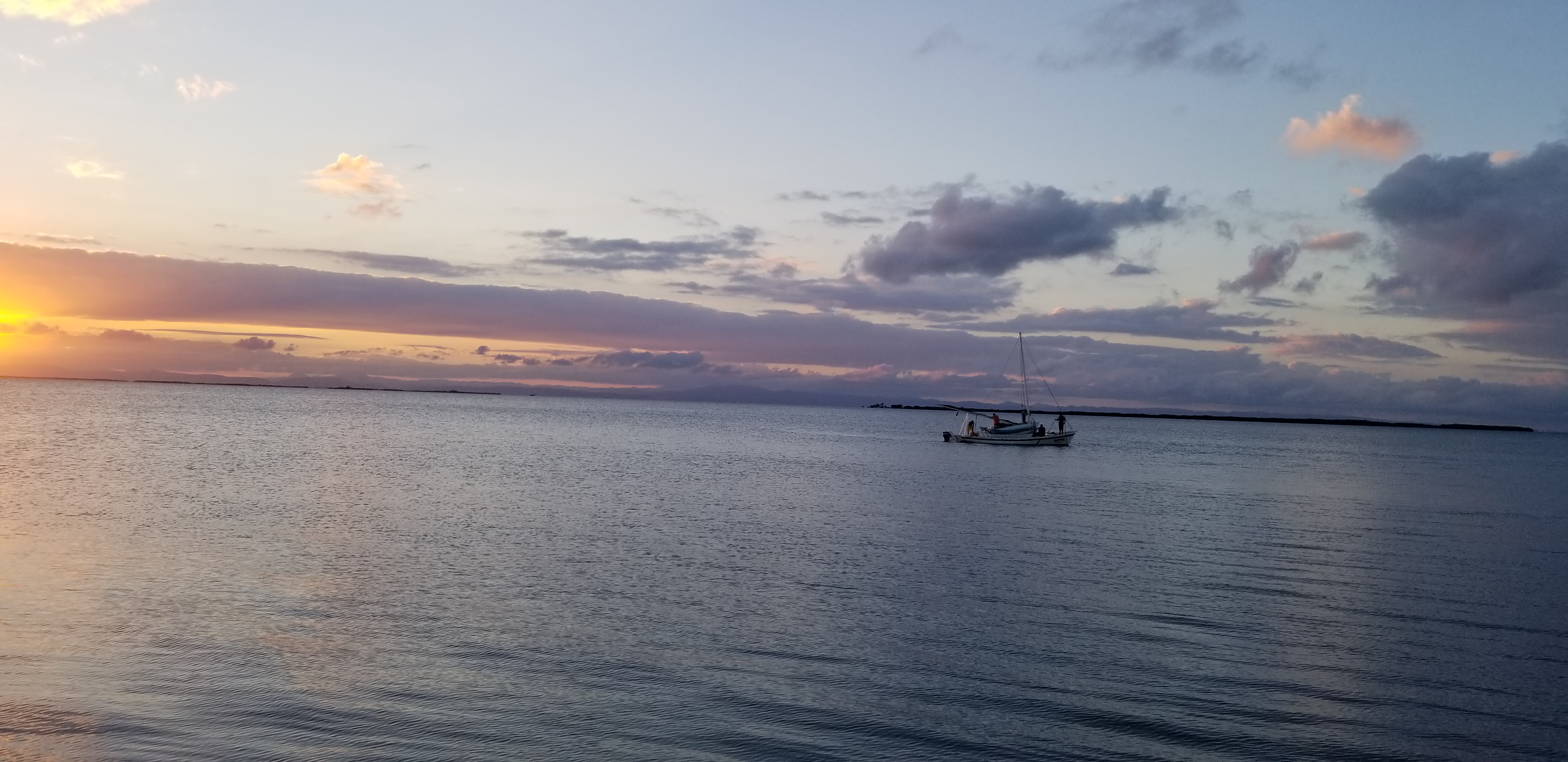 Le jour du départ de Chinchorro, la navigation a été musclée sous un vent variable en intensité comme en direction, charriant des pluies denses. Abattre à chaque grain, reprendre la route entre deux, régler les voiles… En fin d’après-midi, l’arrêt derrière une île perdue au milieu de la baie de l’Ascension était bienvenu. Aussitôt franchie la passe dans la barrière de corail, la mer s’aplanit et prend une couleur turquoise, le vent cesse ses sautes d’humeur.