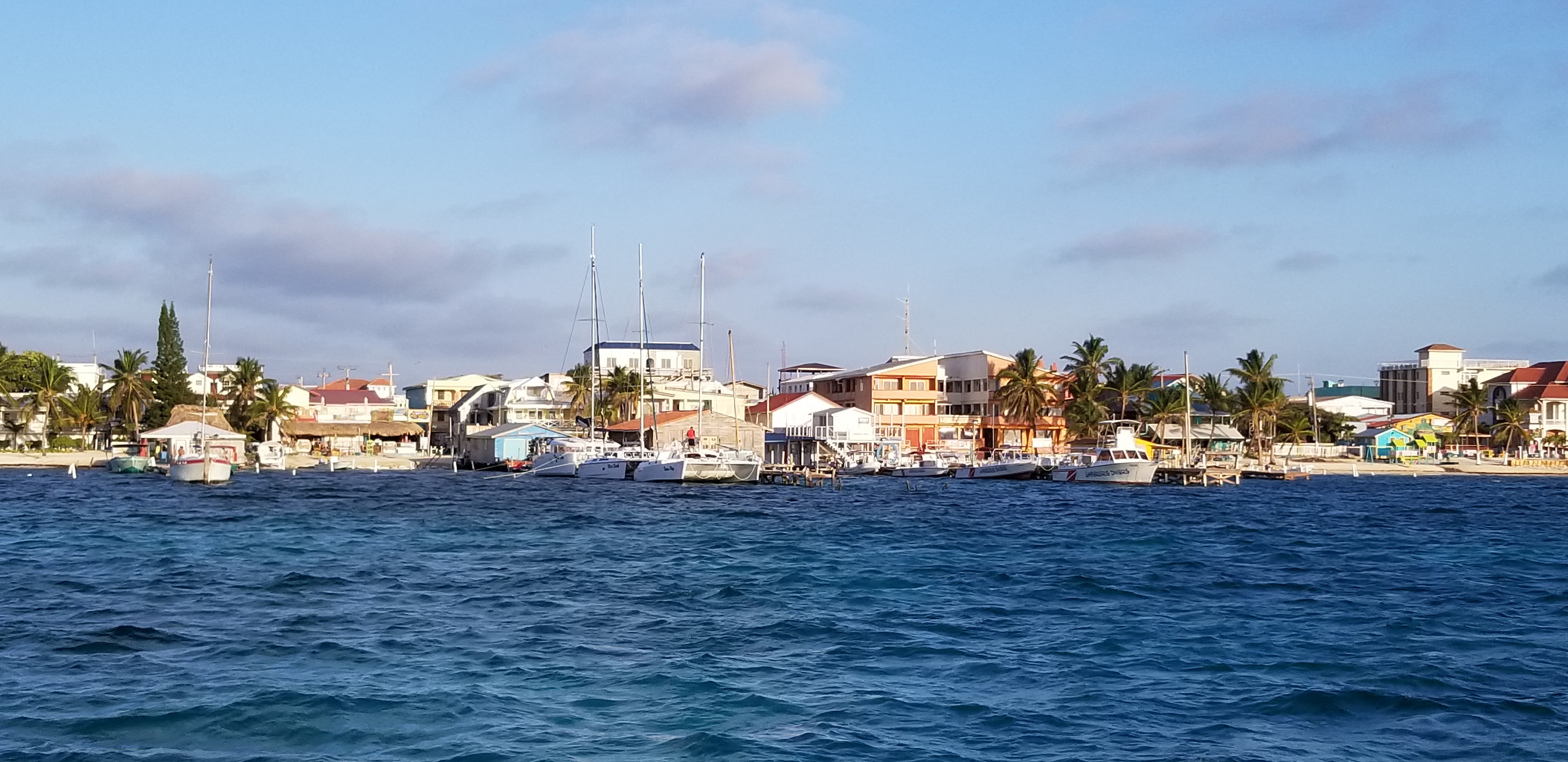 Quelques catamarans semblent assoupis devant la ville. La navette pour Belize City passe et revient 2 heures plus tard. Mais cette activité modeste n’a sans doute pas grand grand-chose à voir avec l’activité de ville balnéaire décrite dans les guides.