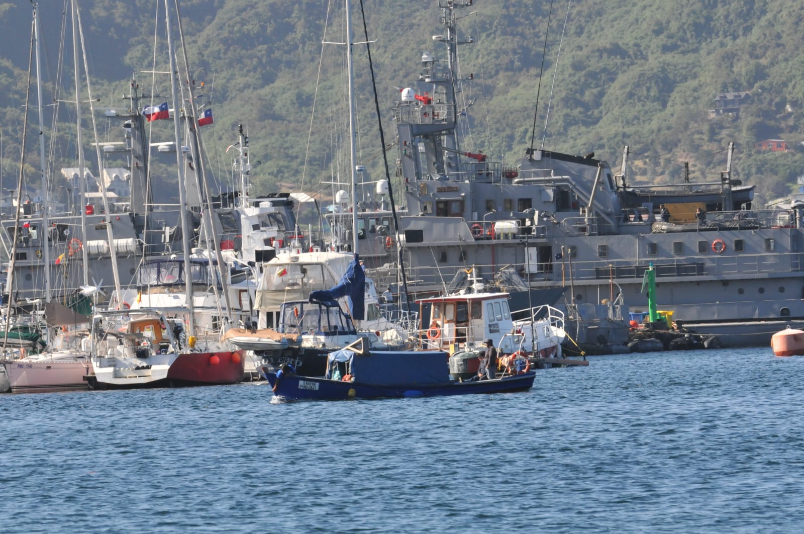 Marc qui a su trouver et remettre en ordre quantité de menus désordres mécaniques qui pouvaient expliquer les pannes intermittentes observées jusque Puerto Williams. Entre vannes plastiques fendues sur serrage trop fort, pièce délicate en cuivre rayée d’un coup de tournevis lors d’un démontage hasardeux de l’impeller , durites montées de travers les 2 colliers de serrage alignés et non décalés, filetages forcés de cosses de batterie, bagues isolantes oubliées sur l’alternateur qu’il avait fallu démonter pour accéder à la pompe… autant de menues erreurs, et autant de pièges, capables d’expliquer des entrées d’air inopportunes dans l’arrivée de carburant et la perte soudaine de puissance du moteur, ou dans le circuit de refroidissement avec désamorçage de l’impeller, ou de comprendre l’inexplicable « défaut » de batteries neuves, qui en réalité marchent très bien, tout comme le moteur, ou de trouver l’origine de la consommation en un temps record des anodes entre Les Malouines et Puerto Montt.