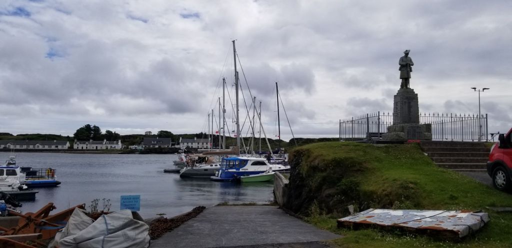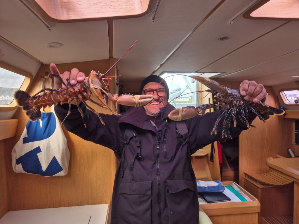 7 juin Sous voilure réduite, la Laureline a frôlé l’île de Rathlin puis s’est engagée dans la traversée vers Port Ellen, haut lieu des islay fumés à la tourbe. Heureuse coïncidence : un pêcheur rentrait à la même heure, avec des homards qui ont accueillis à bras ouverts nos 3 marins.