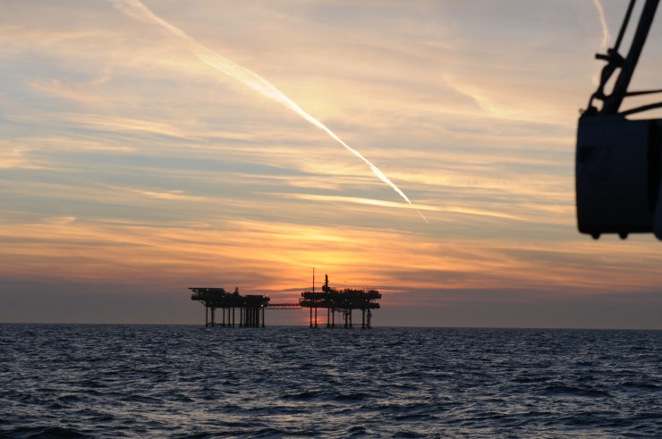 « En progression vers le Nord-Est au près contre le vent en tirant de grands bords, la Laureline a contourné par le Nord les 30 immenses installations de forage pétrolier, bien balisées sur les cartes sur 165 m de fond, fréquentées par des hélicoptères et des tankers. L’endroit doit être assez poissonneux si l’on en juge par le nombre impressionnant de pétrel Boréal qui accompagnent le bateau en décrivant de grands cercles à ras de la houle. Les pécheurs travaillent en groupe de 8 à 10 bateaux, ou parfois isolés comme le Trygvason, puisant chalutier Norvégien bleu et blanc bien entretenu croisé en ce moment, de 65 m de long et 12 de large selon l’AIS, qui traine son chalut sur un fond de 300 m »