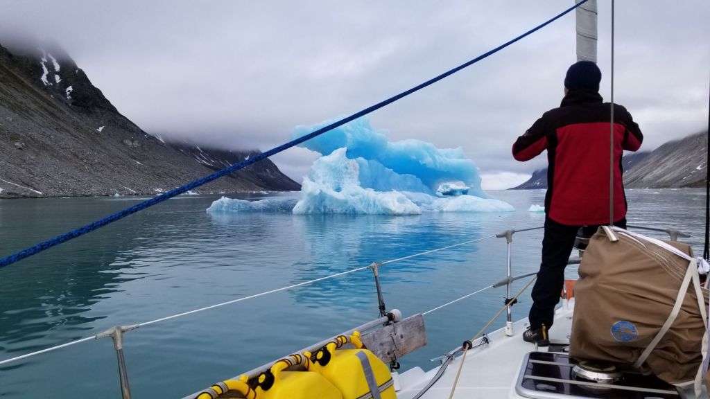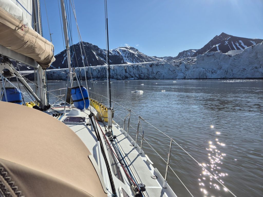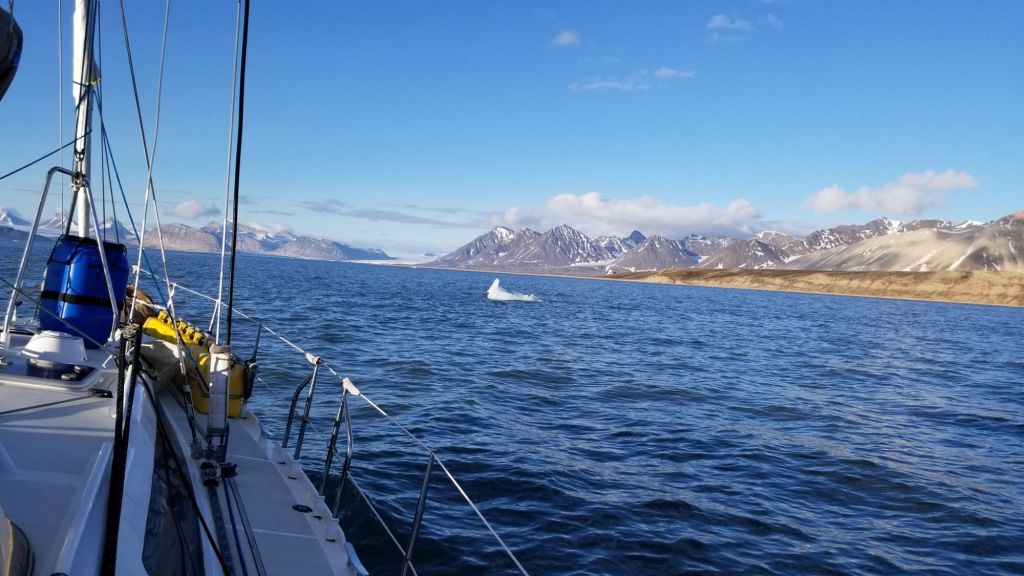 Le voilier Orionde en 2023, parvenu au 79ème parallèle en juin, a dû rebrousser chemin devant les growlers échappés de l’Arctique, au niveau des îles Nordskoya, au Nord-ouest de l’archipel, ancien fief des baleiniers Hollandais. Même si la Laureline s’engage sur ce chemin un peu plus tard en saison, il n’est pas certain que la fonte de la banquise lui permette de reproduire le circuit de 2016.