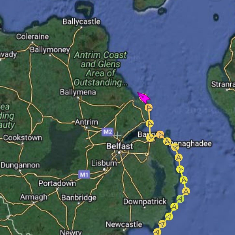Le North Passage, qui conduit à l’Ecosse, n’est pas fréquentable aujourd’hui, la route est bloquée par un Nord ouest qui lève des vagues de 2,50 m, assez difficiles à franchir contre le vent. Un petit stop à Bangor (à coté de Belfast) va peut-être s’imposer. »