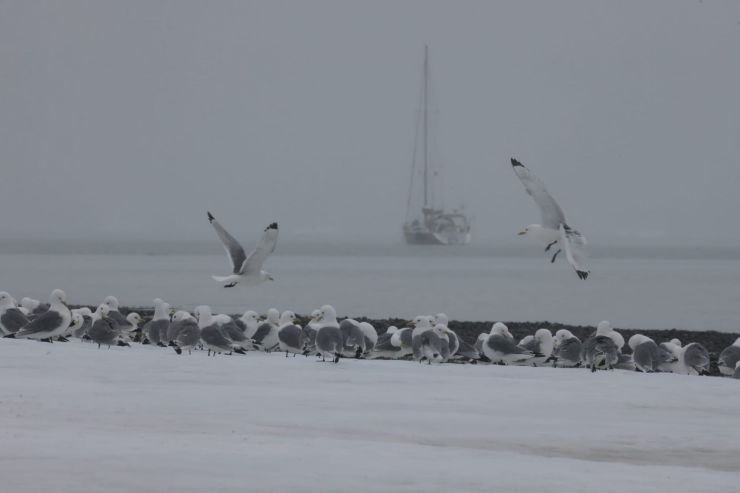 14 juin, des lames balaient le pont, et les oiseaux s’amusent