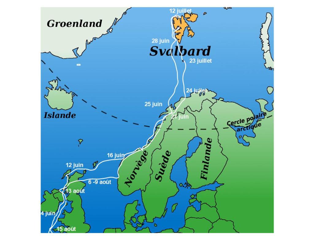 La Laureline a entrepris le voyage vers le Spitzberg une première fois en été 2016, pour découvrir sous le soleil de minuit la faune et la flore du Svalbard, cet archipel norvégien baigné par la mer de Barents, la mer du Groenland et l’océan Arctique, à près de 700 km au nord du cap Nord . Le Spitzberg correspond à la plus grande ïle, à l’ouest de l’archipel, son climat y est relativement clément sous l’influence du gulf stream, contrairement au versant est, qui reste en grande partie recouvert de glace. En 2016, la banquise avait fondu au point qu’il avait été possible d’observer à la mi-juillet les morses de l’île Moffen, par 80° N, 14° ″ E , puis de faire le tour du Spitzberg en passant par Hinloppen.