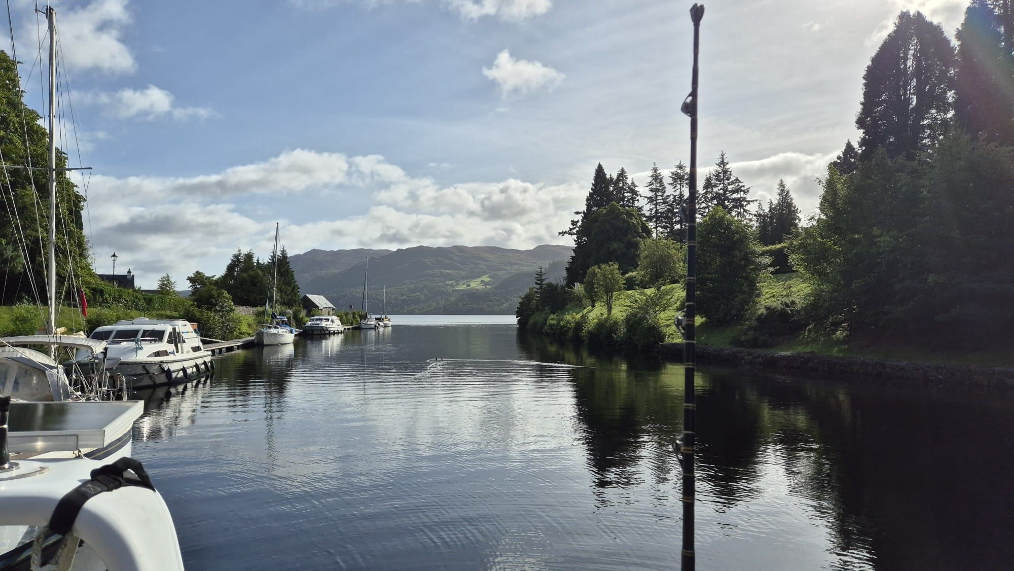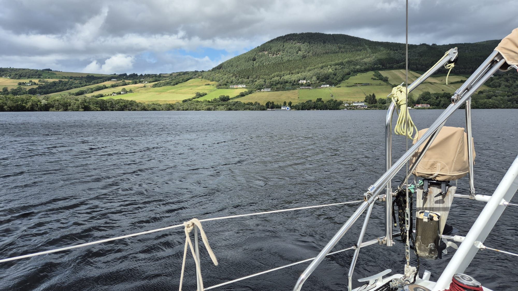 Arès quelques tâtonnement la tactique des écluses commence à être bien au point, voilà la Laureline aujourd’hui au centre de l’Ecosse, entre pâturages et collines verdoyantes, un spectacle inédit. Comme par hasard, le vent souffle encore à 35 kt de face, décision est prise de jeter l’ancre dans un petit renfoncement boisé, par 5m de fond, pour déguster un bon steak et des pommes de terre rissolées à l’ail, honnêtement, il n’y avait pas que de l’eau à table. Mais voilà, force est de constater que le loch Ness est très profond, plus de 100 m, et que les berges tombent à pic, l’ancre a décroché à notre insu pendant les agapes, pendant dans le vide à la proue d’un bateau à la dérive, qui a parcouru tout seul 2 miles pendant le repas, pas loin des rochers au moment du dessert. Ouf! les choses ont été rattrapées à temps, encore une bonne leçon à retenir.
