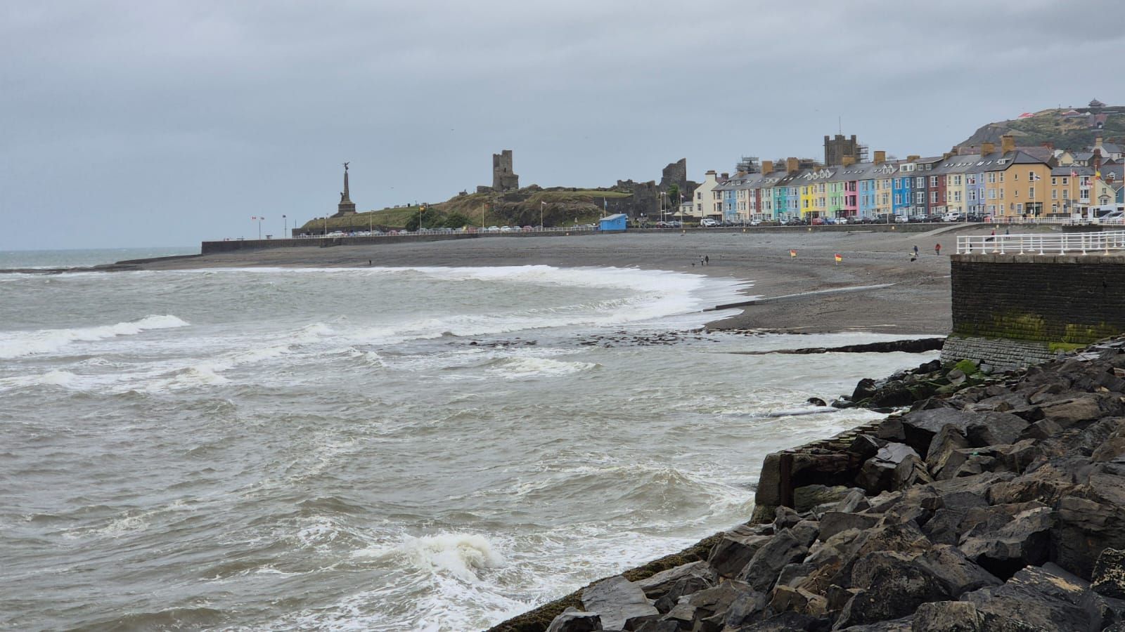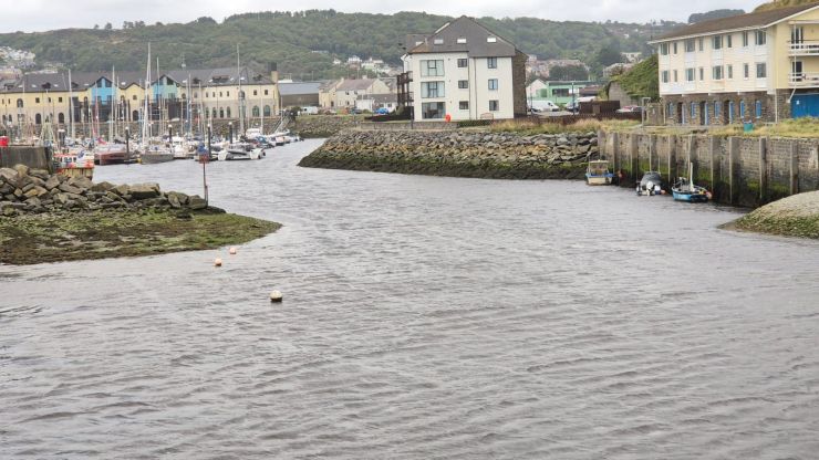 La disparition de la dorsale porteuse, remplacée par un fort coup de vent du sud ouest a obligé la Laureline de chercher un abri dans un aber du pays de Gale. Celui d’Aberystwyth est le plus proche. Son entrée n’est pas facile, possible seulement trois heures avant la pleine mer ou trois heures après, en raison d’une barre à l’entrée et une autre dans le chenal. Or il était trop tard au moment de l’approche. Heureusement la Laureline a un atout magique, sa quille relevable, réduisant le tirant d’eau de 3 m à 1m. C’est passé tout juste, à peine la place en dessous du bateau pour un tourteau. Le harbour master et notre voisine de ponton, vraiment inquiets nous ont-ils dit ensuite, se demandaient comment nous avions fait sans échouer.
